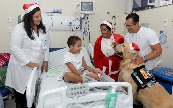 Ala pediátrica do HMS ganha celebração natalina com Papai Noel e cão terapeuta