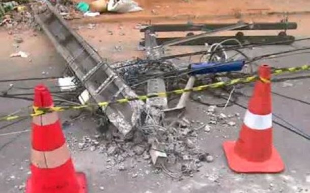 Condutor perde controle do veículo e derruba poste na Via Regional