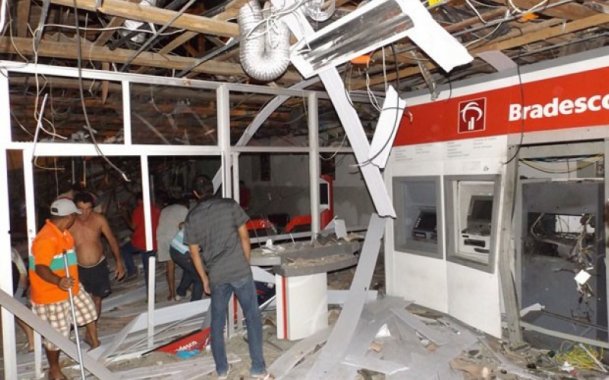 Bandidos atiram contra sede da PM e explodem banco em Cansanção