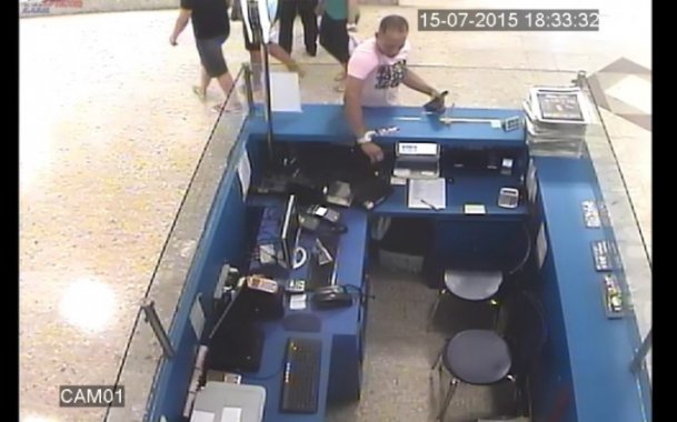 17 de Julho de 2015Ao perceber que o espaço está sem atendentes, o acusado mira o notebook