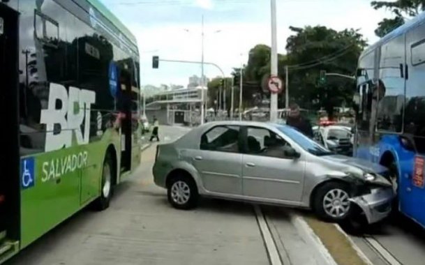 Carro invade faixa exclusiva e colide com ônibus do BRT