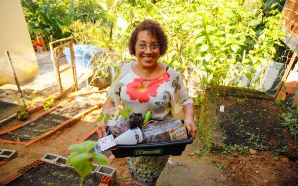 Técnicos da Secis realizam entrega gratuita de kits para instalação de hortas em casa para moradores da capital