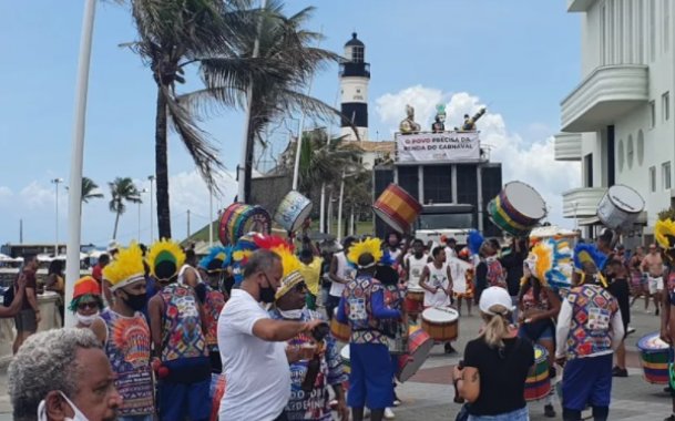 Manifestantes protestaram em prol do carnaval 2022 no Farol da Barra no último domingo (21)