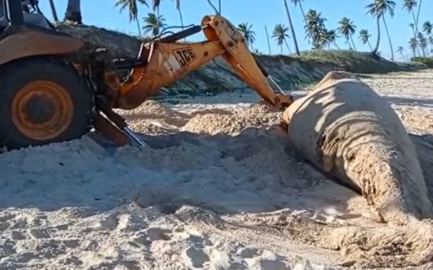 Filhote de baleia jubarte é encontrado morto em praia de Camaçari