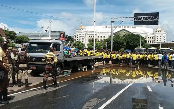 Protesto de rodoviários de micro-ônibus trava trânsito na Av. ACM