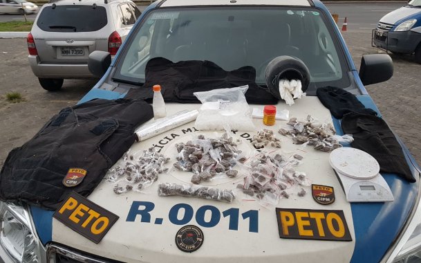 Denúncia leva polícia até depósito de drogas e placas para coletes