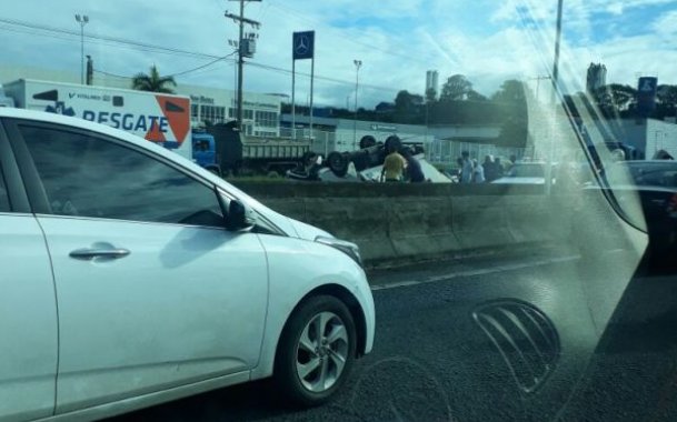 Caminhão capota na BR-324 e população tentar saquear carga