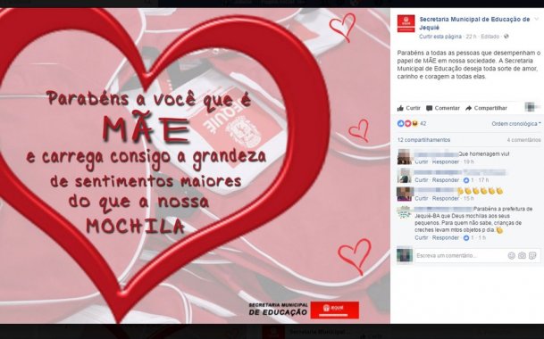 Prefeitura de Jequié brinca com caso das mochilas e homenageia as mães