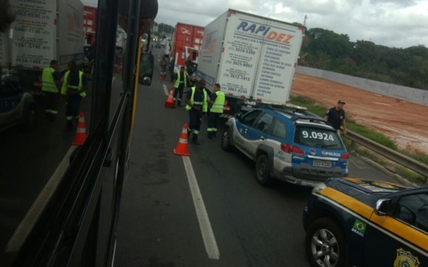 Acidente entre caminhão e container deixa um ferido na BR-324